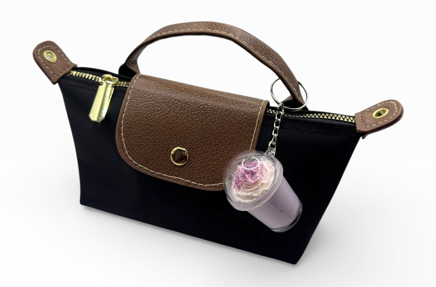 Sweet, sassy, and oh-so-stylish — this milkshake keychain is the perfect little treat! With a mini cup topped in dreamy whipped clay and a strawberry vibe that’s too cute to resist, it’s made to add a pop of fun to your keys or bag.