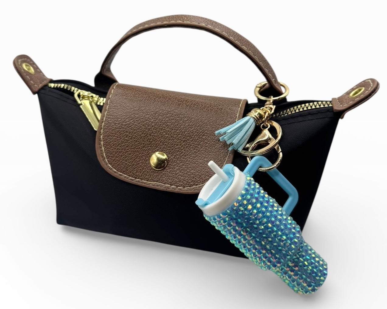 This Rhinestone Tumbler Keychain is more than just a cute accessory—it’s a mini statement piece and a tiny storage gem. Shaped like a mini tumbler and covered in sparkling rhinestones, it's perfect for adding glam to your keys, purse, or bag. Plus, the top opens so you can store small essentials like lip gloss, chapstick, cash, or even mints!